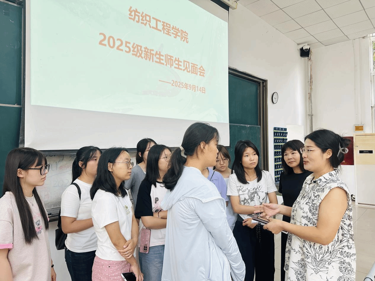 此次见面会是纺织工程学院2025级新生入学教育“织梦启航”主题活动的重要环节。在通过专业思想教育、新生适应教育、学院概况解读之后,作为“国务院特殊津贴专家”“全国五一劳动奖章”“全国纺织工业劳动模范”“中国纺织大工匠等荣誉的获得者,于芸芸带着从一线车间积累的实践经验与行业感悟,为新生打开了认识现代纺织行业的“新窗口”。