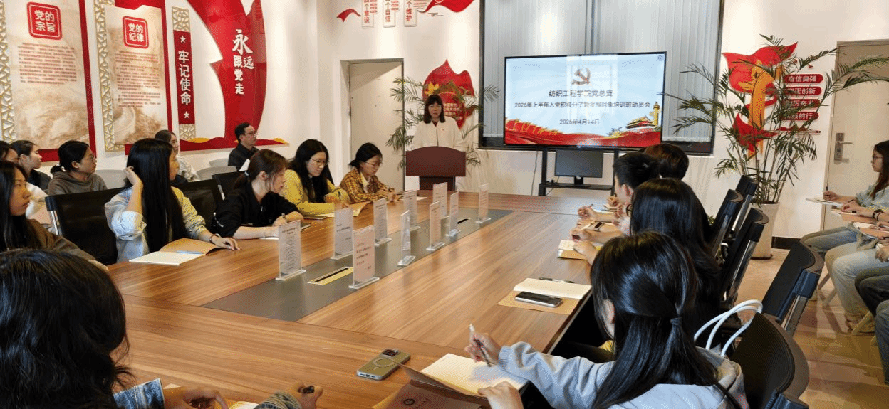 4月14日,纺织工程学院党总支组织召开2026年上半年入党积极分子暨发展对象培训班动员大会。全体入党积极分子和发展对象参培学员参加会议,学院党总支书记罗娅出席会议并作动员讲话。