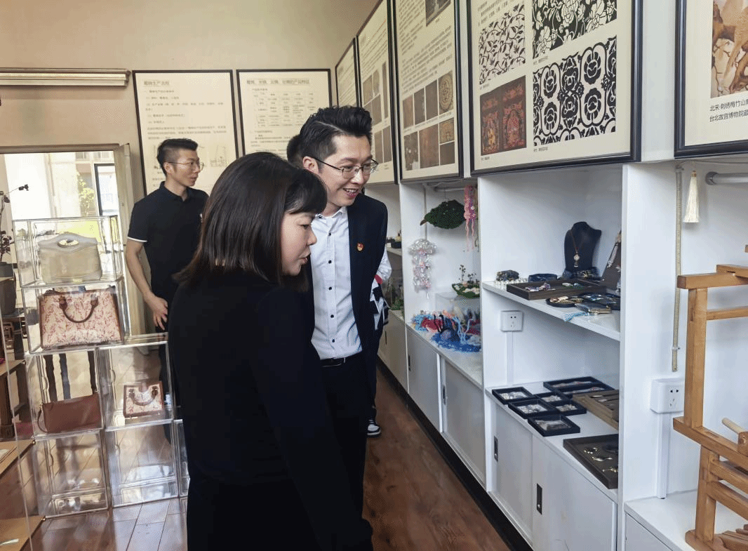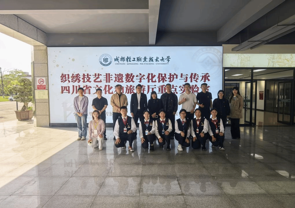 座谈会结束后,罗娅陪同来访一行开展实地调研。一行人先后参观了学院“益路至善”公益社、非遗文创社的学生文创作品展区,社团骨干现场展示了依托纺织专业特色开展公益服务的丰硕成果——从融合纺织技艺的非遗文创设计、爱心织物编织捐赠,到走进社区开展敬老服务、深入乡村开展支教帮扶,充分展现了新时代青年学子以技践行公益、以艺传递温暖的责任与担当。随后,一行人走进四川省织绣技艺数字化重点实验室,工作人员详细讲解了蜀锦、蜀绣的非遗文化渊源与传承现状,重点介绍了现代纺织技术对传统织造技艺的赋能升级,展现了非遗技艺与现代科技的碰撞融合,以及非遗文化与公益服务理念的有机结合,相关展示与讲解获得来访师生的一致高度评价。